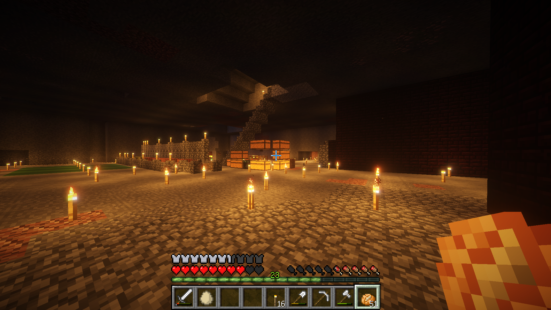 まだ地下を掘り進めていないので、ダイヤはおろか、レッドストーンすら採掘できてない。